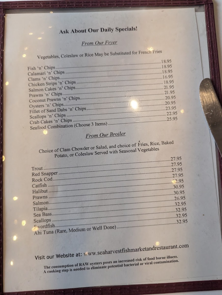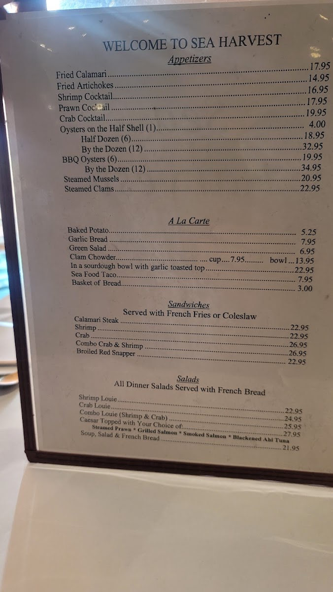 Introducing the Menu at Sea Harvest Fish Market & Restaurants
